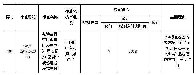 近日,國(guó)家工信部發(fā)布公示,公開(kāi)征集740項(xiàng)推薦性行業(yè)標(biāo)準(zhǔn)集中復(fù)審結(jié)論的意見(jiàn)。其中,QB/T 2947.1-2008《電動(dòng)自行車(chē)用蓄電池及充電器 第1部分:密封鉛酸蓄電池及充電器》被列入修訂計(jì)劃。