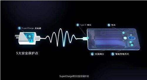 SuperCharge最大輸出功率可達25W。對于一款配備4000mAh電池的華為手機也只需30分鐘就可充滿58%,華為SuperCharge超級快充技術提供15層安全防護,分別在SuperCharge充電器、Type-C接口、智能充電芯片、分流閘門、電池構成維護節點。每個維護點又有三層防護網(安全電壓防護網、安全電流維護網、溫度監控維護網),合計15層安全維護機制,以此來實現進一步提升用戶對快充安全的用機體驗。