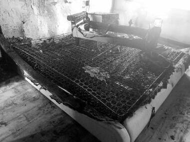 事發(fā)常青花園五小區(qū)14棟。昨天上午10點(diǎn)多,武漢晚報(bào)記者趕到現(xiàn)場(chǎng)看到,小區(qū)電工正在起火房屋內(nèi)檢查電路。整個(gè)房間都被熏得漆黑,起火點(diǎn)位于房屋主臥,一張雙人床燒得只剩床墊內(nèi)的彈簧支架。