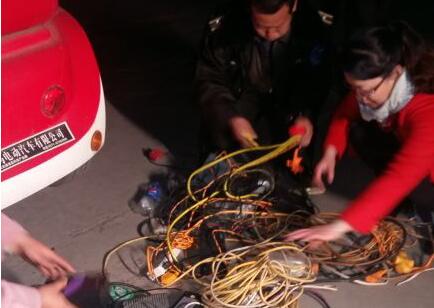 12日晚上9時許,北林路辦事處安監辦的工作人員帶領巡防隊員一起,首先來到了位于朝陽路上的園藝小區,發現小區的居民樓上,橫七豎八地從不少居民家的窗戶里扯出了電線。電線垂到樓下后,有的連在一個插線板上,而插線板上又插著電動車的充電器。也有的飛線帶有插頭,直接接在電動車的電瓶充電器上。為了消除安全隱患,安監人員及時切斷了這些飛線的電源,收繳了一批正在充電的電動車充電器。隨后,工作人員在恒生家園小區里,也發現了飛線充電的亂象。在金明路姚橋小區里,一棟居民樓上竟然扯了40多條充電線,這些電線粗細不一,顏色雜亂,工作人員將線剪斷后,竟然盤了一大捆。