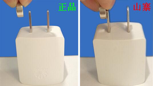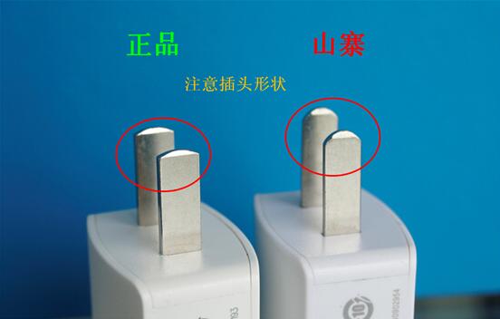 第四、看插頭形狀。正品金屬插頭呈輕微弧形,山寨插腳頭部呈梯形或者三角形;此外正品金屬插頭真材實料,插頭寬厚,而山寨插頭則偷工減料,較為薄窄。