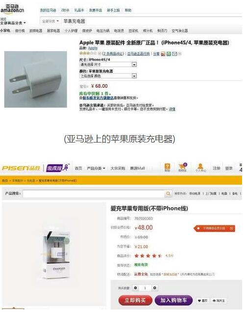 自從蘋果換購充電器的消息出來后,網(wǎng)絡(luò)上的評論褒貶不一。有的盛贊蘋果終于在中國走親民路線;有的則認(rèn)為一個充電器68元價格過高。不過讓人值得注意的是,有網(wǎng)友指出目前亞馬遜上蘋果原裝充電器的價格正是68元。而對比評測文章里質(zhì)量相差無幾的品勝48元愛充,價格溫和不少。不過不帶iphone線,又稍顯遺憾。
