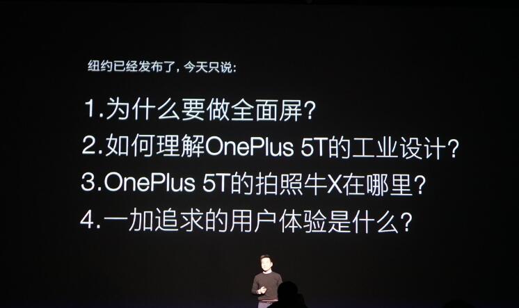 2017年11月28日,一加在北京798藝術中心發布OnePlus 5T全面屏智能手機。