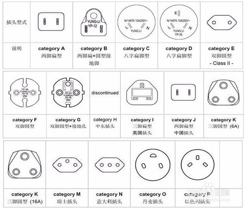 目前轉換插頭類型主要分為6大類:英標,國標,美標,歐標,南非標,意標。