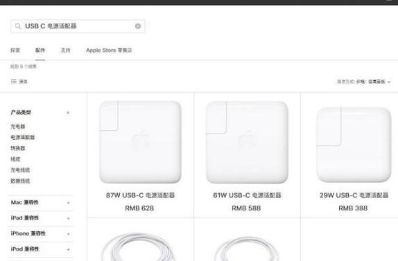 自己買一個(gè)充電器不就ok了?充電器能賣多貴?貧窮限制了我的想象力,在蘋果官網(wǎng)搜索USB-C電源適配器一共有三款產(chǎn)品,最便宜的29W也要388元,而最貴的87W高達(dá)628元,并且不止是充電器,188元一根的USB-C to Lightning 線材也要一起購買才可以讓iphone正常使用快充功能,天了嚕小編覺得這價(jià)格真心買不起。